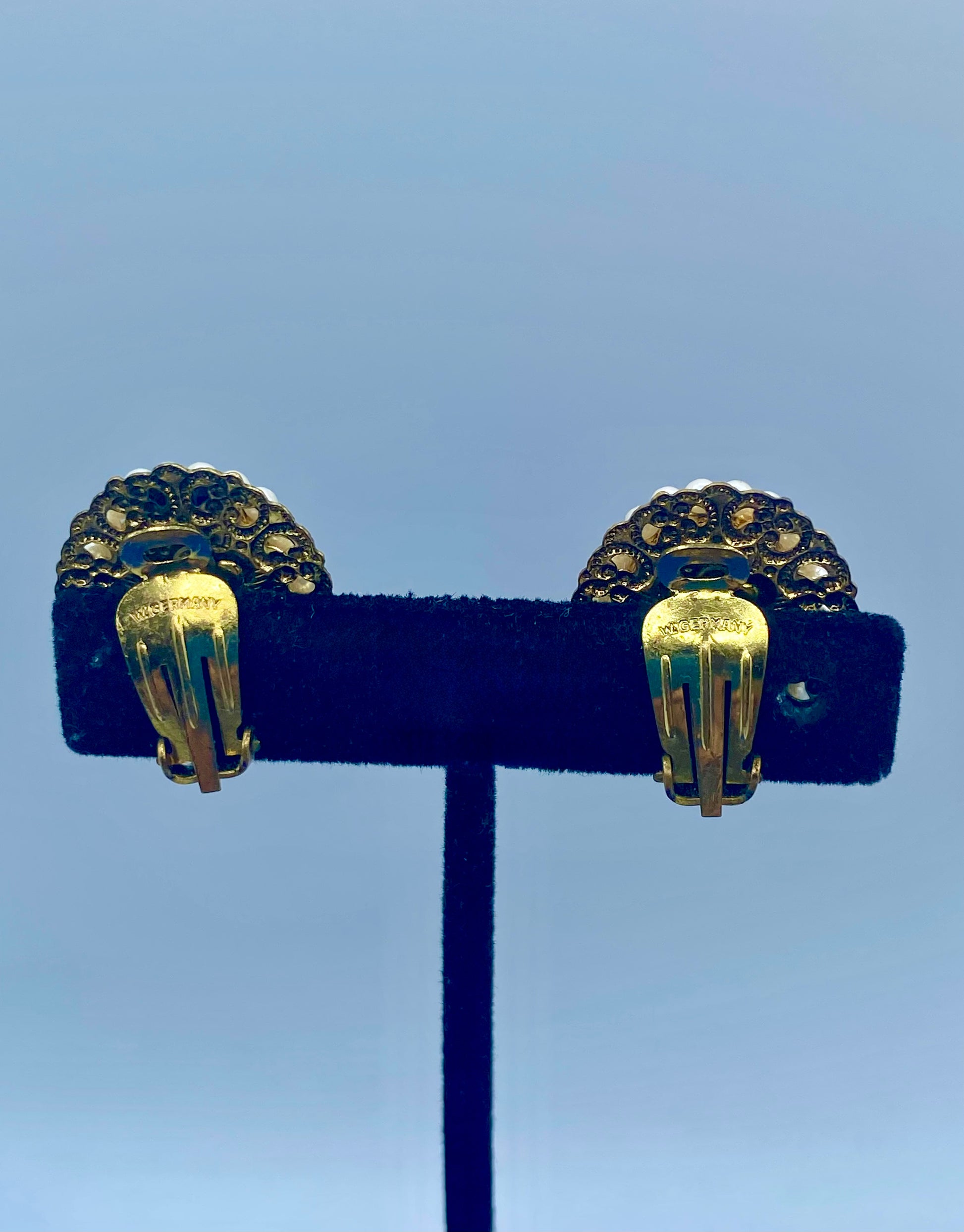 Vintage West Germany Faux Pearl Cameo Clip Ons